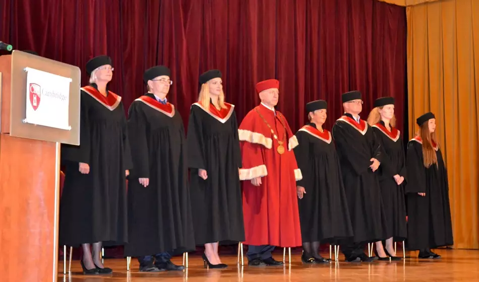 Dne 18. září 2016 proběhlo slavnostní ukončení studia absolventů Cambridge Business School. V reprezentativních prostorech Národního domu na Vinohradech se sešli studenti se svými hosty, představitelé vedení školy i lektorského týmu. Po slavnostním přípitku a předání diplomů došlo k fotografování šťastných absolventů. Níže si můžete fotografie ze slavnostního přípitku absolventů i ze samotného slavnostního aktu prohlédnout.